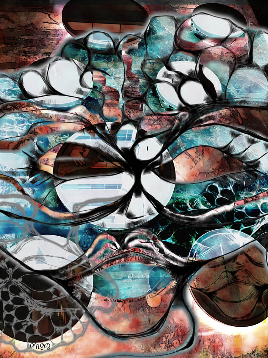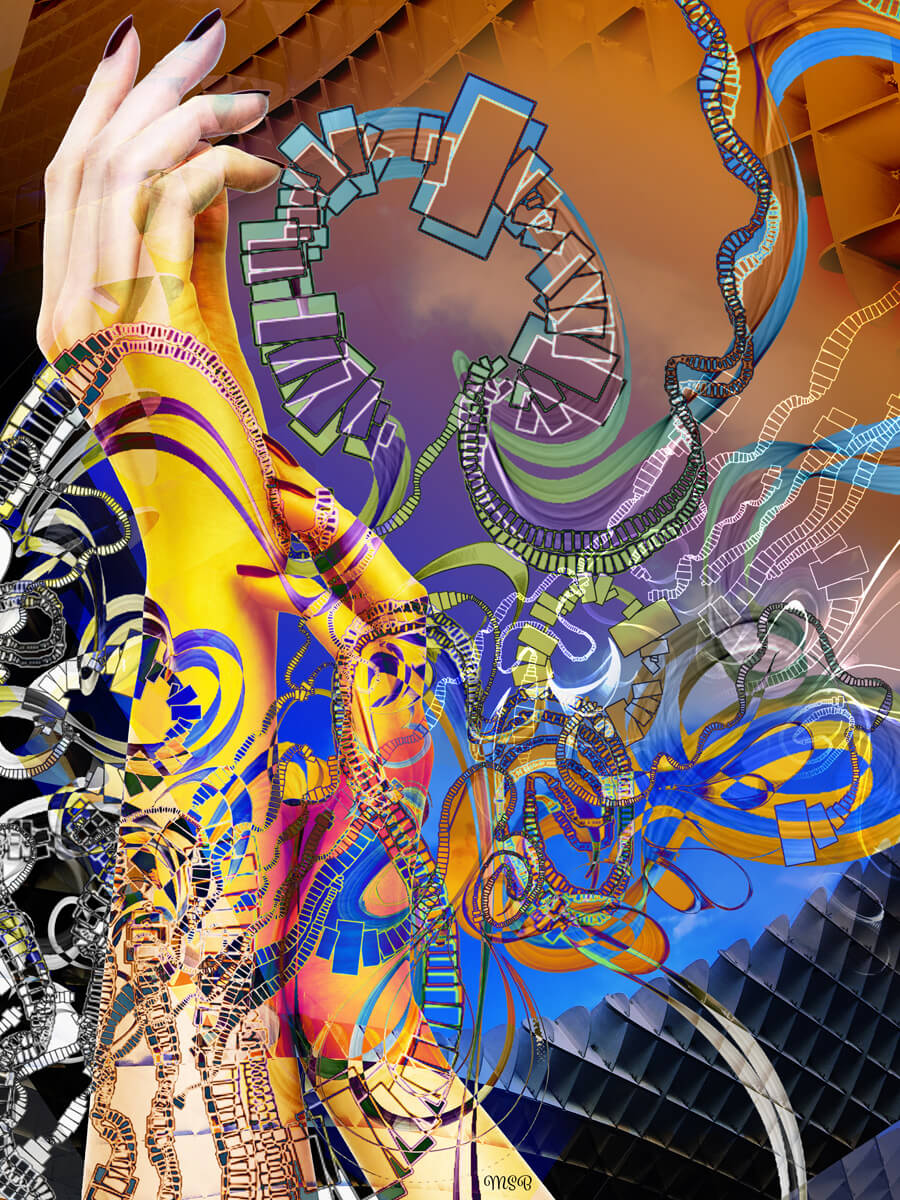 The process—choosing a photo, reworking it with Photoshop, combining it with a digital drawing, adding shapes and colors—is another part of my collage artwork experience.